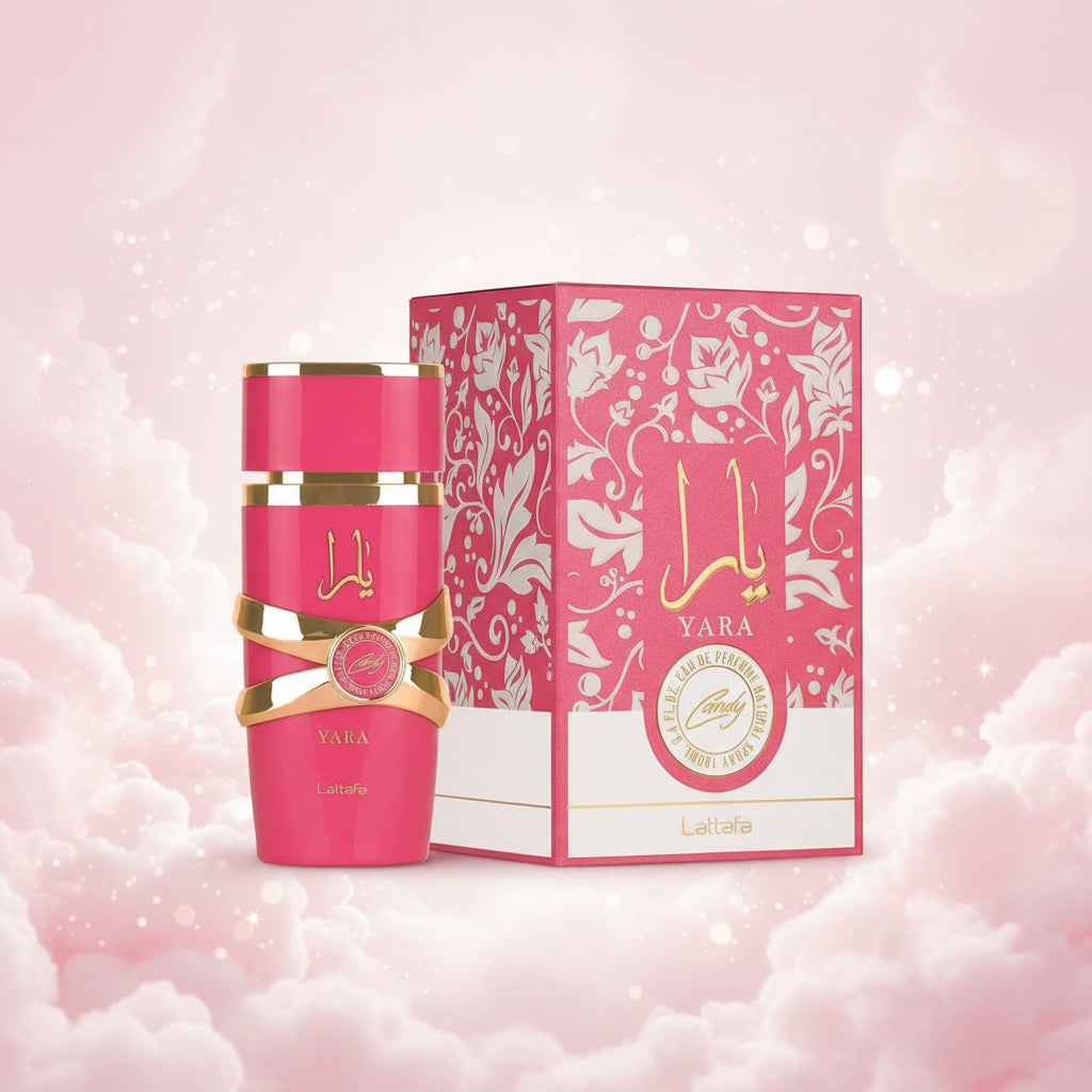 Yara Candy es un perfume rosa dulce, cremoso y ultra femenino. Combina notas de frutos rojos, vainilla suave y un toque algodonoso, creando un aroma coqueto, juvenil y adictivo. Ideal para diario, irresistiblemente dulce sin empalagar. Perfecto para quien quiere oler tierna, elegante y llamativa.